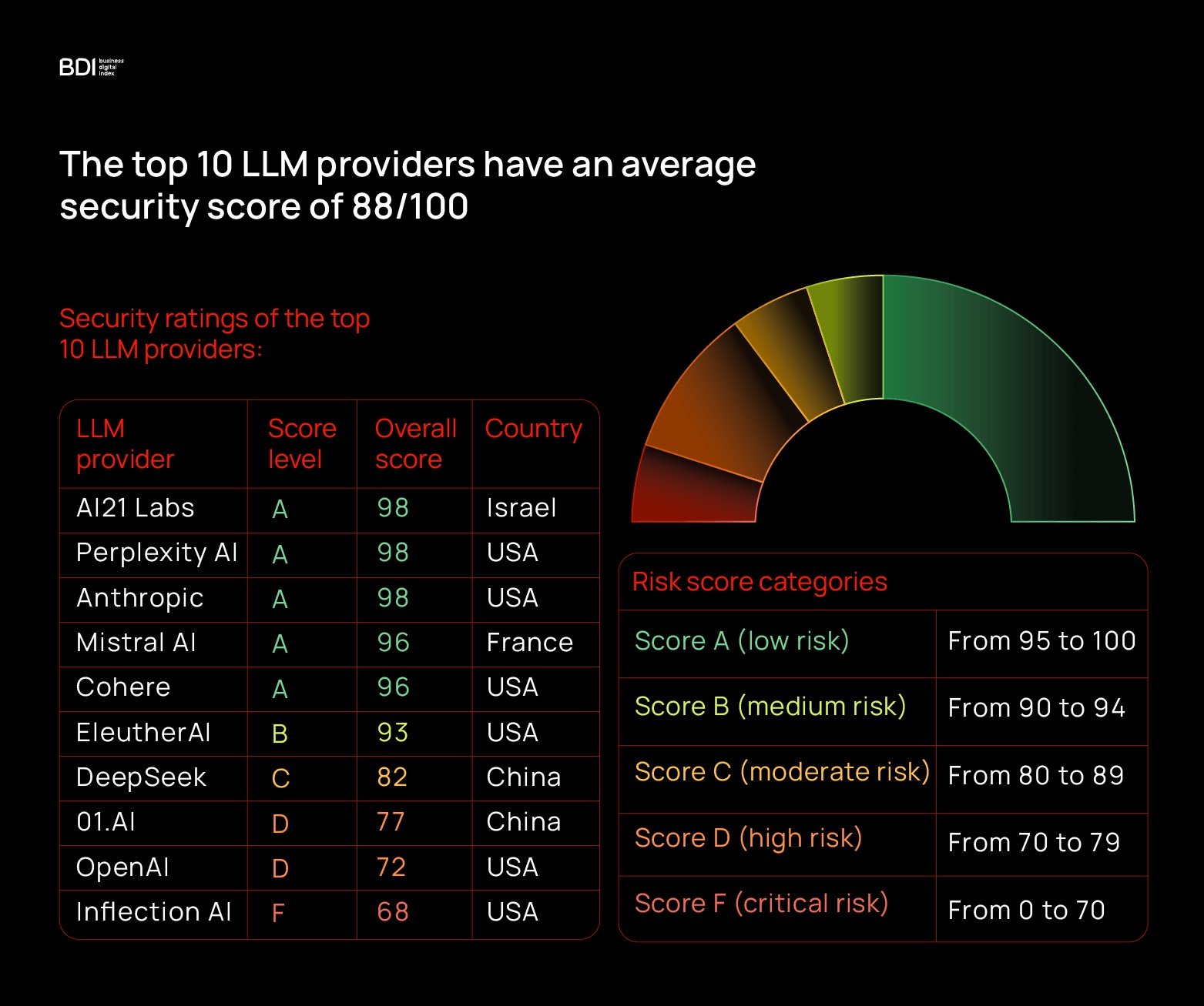 Cybersecurity analysis carried out by the Business Digital Index (BDI) team recently examined 10 leading large language model providers.